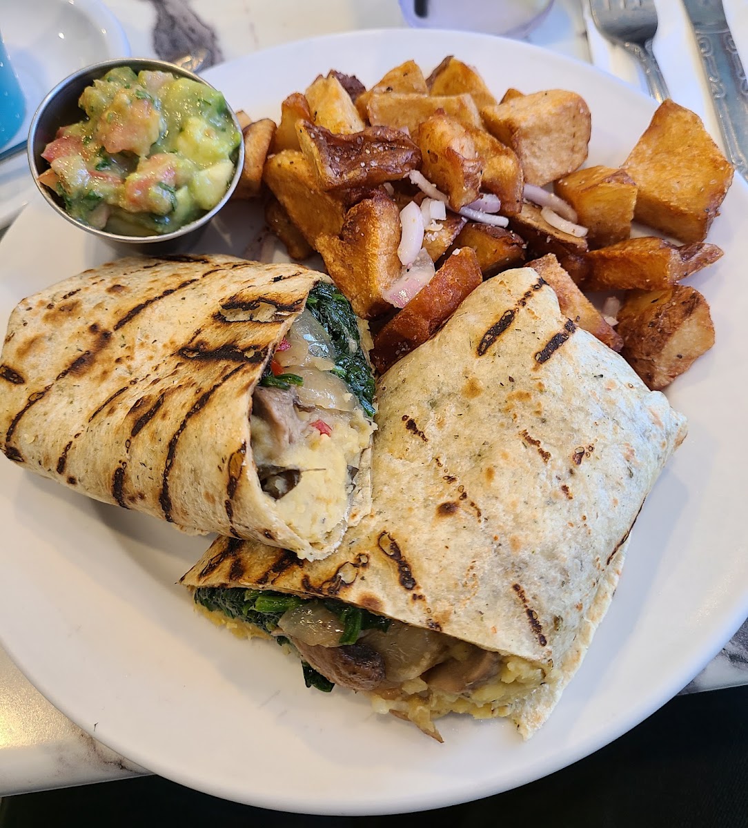 The cafe is known for its warm, inviting ambiance. Walking in, you're immediately greeted by the scent of freshly brewed coffee and a buzz of conversation from the other diners. The decor is modern yet homey, with touches of local art and an open kitchen where you can see the chefs at work. The layout is comfortable, with plenty of seating options for both solo diners and groups. It's the kind of place where you can settle in, relax, and enjoy your meal without feeling rushed.